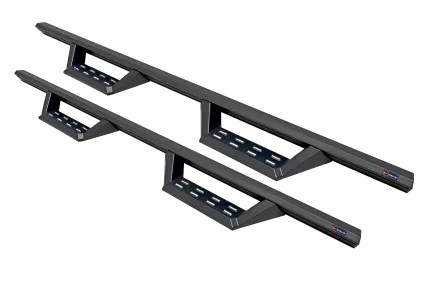 • Bolt-on adjustable drop steps with formed step surface that feature reverse punch plate for maximum traction