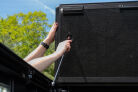 Introducing the Enthuze R-Series. This hard folding truck bed cover uses aluminum panels for superior strength and durability. You get three secure riding positions, allowing for more control over your truck bed than ever before. Its clamp-on design makes installation and removal a cinch, and because it mounts flush with your truck's bed rails, it stays tightly sealed and keeps water out.