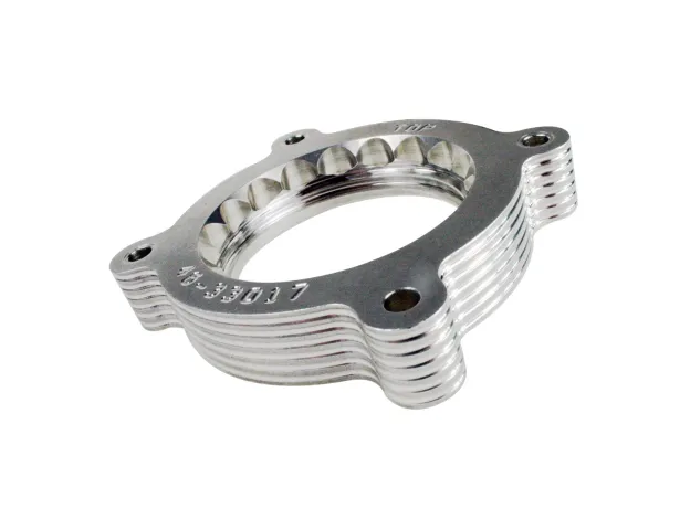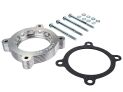 Silver Bullet throttle body spacers create turbulence in the air flow at the point just prior entry into the engine increasing horsepower, torque and improving throttle response and fuel efficiency. Silver Bullet throttle body spacers are constructed out of durable T-6061 billet aluminum and using a unique serrated/helix entry to create turbulence at the manifold while eliminating the annoying whistle found in other helix only throttle spacers.