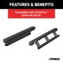 ARIES ActionTrac powered running boards are an innovative step in truck accessories. These electric side steps are unique from other power side steps because they are actually two steps in one. This step-within-a-step design -- combined with a no-drill installation, smart-sensor operation and powder-coated aluminum construction -- truly makes these retractable running boards an asset for the offroad truck or Jeep Wrangler, particularly as lifted truck steps. This door delete kit is intended to be mounted on a Jeep Wrangler with the factory doors removed or replaced with aftermarket doors. It includes two switches that allow the powered steps to be deployed and retracted at the push of a button. NOTE: Use of these switches requires manual operation of the running boards. Failure to retract the boards when operating the vehicle could result in damage to the boards or vehicle.