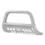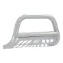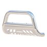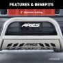 The ARIES 3" bull bar is made for those who face the uncertain road without fear. This particular model is constructed from 304 stainless steel. 304 stainless is high in nickel content, allowing the bull bar to easily resist water, road salt and rust and maintain its mirror-like polished finish in spite of the elements. Other available finishes include high-gloss black stainless steel, textured black steel and semi-gloss black steel. Customizing the look of your vehicle is simple with the ARIES 3" bull bar. It is equipped with pre-drilled light mounting holes and a removable skid plate. The center crossbar features two pre-drilled holes that readily accept an LED light bar or two LED work lights. The skid plate is made from 304 stainless steel and has a brushed finish to stop rust and hide scratches and scuffs. It also features an aggressive, ARIES-exclusive cutout pattern and can be removed for a customized look. Each ARIES 3" bull bar is made a vehicle-specific design, meaning that for each make and model, the bull bar has a custom bend and unique mounting brackets. This allows for the best possible fit on your vehicle and ensures solid attachment. The brackets also use pre-existing factory holes in the vehicle's frame to eliminate drilling, speed up installation and increase rigidity. This bull bar fits select model years of the Ram 1500, Ram 1500 Classic and Dodge Ram 1500 (see application info to verify fitment).