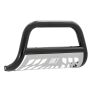 The ARIES 3" bull bar is made for those who face the uncertain road without fear. This particular model is constructed from strong carbon steel and finished in a durable E-coat and semi-gloss black powder coat finish to outlast rust and the elements. Other available finishes include high-gloss black stainless steel, polished stainless steel and textured black steel. Customizing the look of your vehicle is simple with the ARIES 3" bull bar. It is equipped with pre-drilled light mounting holes and a removable skid plate. The center crossbar features two pre-drilled holes that readily accept an LED light bar or two LED work lights. The skid plate is made from 304 stainless steel and has a brushed finish to stop rust and hide scratches and scuffs. It also features an aggressive, ARIES-exclusive cutout pattern and can be removed for a customized look. Each ARIES 3" bull bar is made a vehicle-specific design, meaning tha t for each make and model, the bull bar has a custom bend and unique mounting brackets. This allows for the best possible fit on your vehicle and ensures solid attachment. The brackets also use pre-existing factory holes in the vehicle's frame to eliminate drilling, speed up installation and increase rigidity. This bull bar fits select model years of the Ram 1500, Ram 1500 Classic and Dodge Ram 1500 (see application info to verify fitment).
