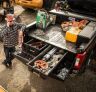 Details:Truck Bed Organizer 19-Pres GM Sierra or Silverado 1500 8 FT DECKEDBuilt from 100 percent recycled HDPE (High Density Polyethylene) co-molded to a galvanized recycled steel subframeSystem payload rating: 2000 lbs evenly distributed on the deckDrawer payload rating: 200 lbs per drawerSystem weight: 200 lbs short bed systems, 220-230 lbs standard bed systemsTwo full bed-length drawers. Note: Drawers do not fully extend. Max drawer extension: 48 inches for reasons related to physicsDrawers are weatherproof. System itself is impervious to moisture, extreme UV light exposure and severe temperaturesOversized cast aluminum handles for ease of operation with glovesNo drilling or alteration of vehicle requiredFull line of accessories available to increase your level of awesomeWill work with a spray-in bed liner, but not a drop-in plastic bed linerWill work with a BedRug mat, but not with a Bed