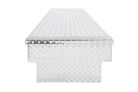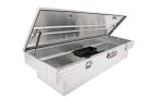 Dee Zee Tool Box - Red Label Single Lid Crossover. Constructed of heavy duty Brite-Tread aluminum. Crown style lid with a full pan double-V stiffener for superior rigidity. Other features: lockable stainless steel paddle handles, dampened gas shocks, closed cell foam gasket, and self-adjusting strikers. Removable plastic tool tray to help keep small items organized.