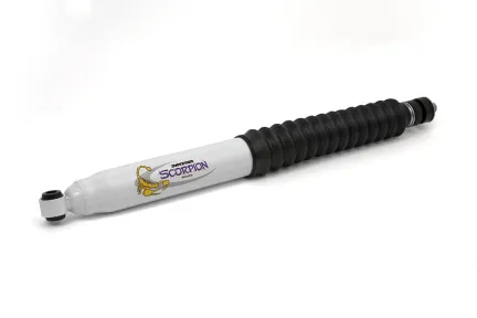 Daystar s Scorpion Shock Absorbers are available for several popular applications. Paired with Daystars Comfort Ride Lift and Leveling kits, Scorpion Shock Absorbers provide the total package for anyone who wants no-hassle, one-stop shopping when adding 2-3 in. of lift to their truck, Jeep, or SUV. Daystar Scorpion Shock Absorbers are specifically tuned for each vehicle application to ensure optimum performance. They feature a twin-tube design, which increases oil capacity and reduces shock fade. Inside the shocks are a durable piston seal and a velocity-sensitive valving stack, while a chrome-hardened piston shaft ensures longevity. Scorpion Shocks are further strengthened with Daystars premium Polyurethane shock bushings and topped off with legendary Daystar shock boots. Daystar Scorpion Shocks are available for popular Comfort Ride Lift and Leveling kit applications that require longer shocks. Scorpion Shock Absorbers are available with Daystars Lift and Leveling kits or as stand-alone replacements for multiple applications