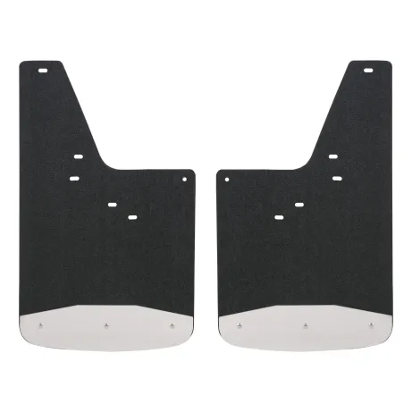 Whether you're on the job or off-roading through the wilderness, it doesn't take long for rocks and other debris to wreak havoc on the body of your truck. LUVERNE Textured Rubber Mud Guards are the perfect solution for maintaining that pristine, professional look. For the front or rear of the truck, these custom mud flaps add style and body protection. They are constructed from heavy-duty black rubber that stands up to road debris and sheds water with ease. They feature 18-gauge stainless steel plates to help protect the bottom edge and extend the life of the mud flaps. With their 3/8" thick, recycled rubber construction, Textured Rubber Mud Guards easily deflect everything from mud to gravel, protecting the body of your truck from scratches, chips and scuffs. They are also made to add a stylish accent to your truck, featuring stainless steel plates along the bottom edge of each flap. The plates are made from 18-gauge stainless steel to provide a heavy-duty, rust-resistant shield, and they feature a bright, high-polish finish for a long-lasting shine. The textured finish of the rubber mud flaps is also designed to easily hide minor scuffs and scratches and maintain a clean appearance. For an easy installation and a custom fit, these truck mud flaps are made vehicle-specific. This particular set fits specific years of the Chevy Silverado 1500, 2500 HD or 3500 HD and GMC Sierra 1500, 2500 HD or 3500 HD (see application info to verify fitment). They install with corrosion-resistant fasteners and high-strength steel mounting brackets with a galvanized finish for long-lasting durability. Universal mud flaps are also available.