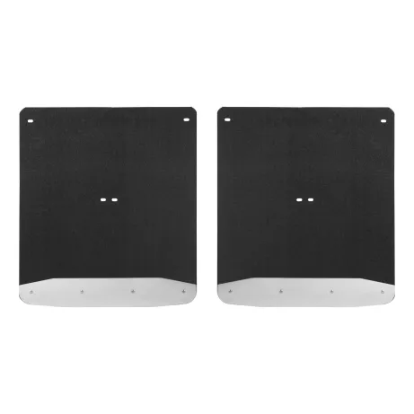 Whether you're on the job or off-roading through the wilderness, it doesn't take long for rocks and other debris to wreak havoc on the body of your truck. LUVERNE Textured Rubber Mud Guards are the perfect solution for maintaining that pristine, professional look. For the front or rear of the truck, these custom mud flaps add style and body protection. They are constructed from heavy-duty black rubber that stands up to road debris and sheds water with ease. They feature 18-gauge stainless steel plates to help protect the bottom edge and extend the life of the mud flaps. With their 3/8" thick, recycled rubber construction, Textured Rubber Mud Guards easily deflect everything from mud to gravel, protecting the body of your truck from scratches, chips and scuffs. They are also made to add a stylish accent to your truck, featuring stainless steel plates along the bottom edge of each flap. The plates are made from 18-gauge stainless steel to provide a heavy-duty, rust-resistant shield, and they feature a bright, high-polish finish for a long-lasting shine. The textured finish of the rubber mud flaps is also designed to easily hide minor scuffs and scratches and maintain a clean appearance. For an easy installation and a custom fit, these truck mud flaps are made vehicle-specific. This particular set fits specific years of the Chevy Silverado 3500 HD and GMC Sierra 3500 HD (see application info to verify fitment). They install with corrosion-resistant fasteners and high-strength steel mounting brackets with a galvanized finish for long-lasting durability. Universal mud flaps are also available.