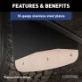 - High-polish, 18-gauge stainless steel plates resist corrosion and add style