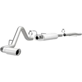 The MagnaFlow Street Series Cat-Back Performance Exhaust System 15564 brings out the personality of your Truck with our signature resonant, powerful engine tone and dyno-proven performance. Thanks to its fast-flowing, mandrel bent 3in. main piping and 1 Straight-Through mufflers ending in a Single Passenger Side Rear exit with 4in. Polished Welded-On Double Wall Angle Cut Rolled Edge tips, this Truck exhaust kit has the performance chops to match its sporty sound and appearance. Upgrade your ride to the next level with an exhaust that has the pipes to put other Truck's to shame. With this system your vehicle will be producing Moderate exterior and Mild interior sound levels while leaving other cars and trucks feeling envious at every stoplight. Exhaust kit 15564 features a cat-back layout that replaces your ride's stock exhaust components from near the catalytic converter on back. Extensive 3D scanning during development has resulted in a direct-fit design that you can easily install yourself. 15564 is produced using CNC precision robotic manufacturing techniques and is backed by MagnaFlow's 1-year limited finish warranty and limited lifetime construction warranty.