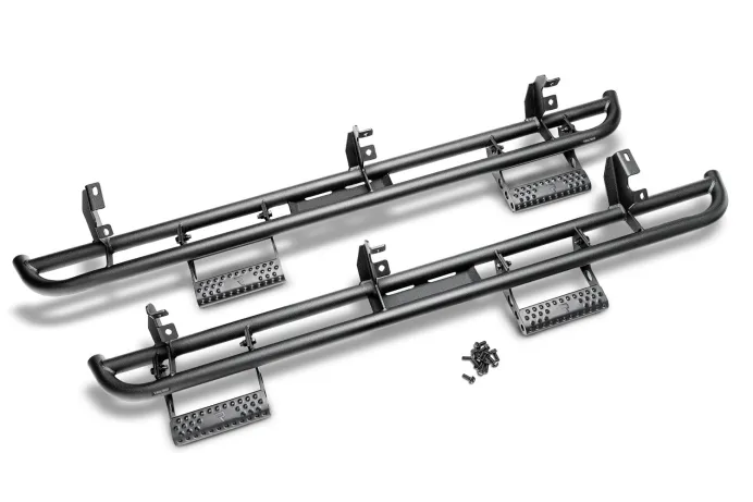 N-FAB RKR Rails Provide superior protection while enhancing the look of the vehicle. Constructed using 0.12 in. wall, 1.75 in. tubular steel, RKR Rails are treated inside and out for extra corrosion resistance so you know they are built to last. Finished with a durable textured black powder coat, N-FAB RKR Rails look as good as they perform both on and off-road. Making a great product even better, N-FAB offers optional Detachable Steps that are compatible with all N-FAB RKR Rails and Factory Toyota FJ Rock Rails. These steps offer convenient vehicle access for daily use and can be removed to allow for maximum group clearance when off-road.