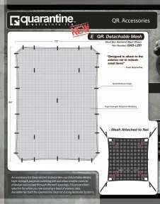 • Dimensions: 73" Width x 99" Length. Mounts to net. This product is made of high-quality materials to serve you for years to come. Designed using state-of-the-art technology and with customers in mind. It will meet your needs and deliver great quality at an affordable cost. This product is made of high-quality materials to serve you for years to come. Designed using state-of-the-art technology and with customers in mind, this product by Quarantine will last a lifetime. It will meet your needs and deliver great quality at an affordable cost.