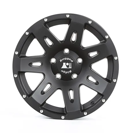 These Euro-spec 17x8.5 hub-centric wheels are designed to exactly center the wheel over the hub. Providing the best fit possible and the proper clearance for brake rotors, steering components, and suspension. Better fit means no wheel vibration! A stainless steel button-head socket cap screws around the perimeter of the outer wheel face, giving it a great 3-piece look, and allowing you to accessorize with our optional trim ring. Each wheel includes a modular center cap. The durable powder coated finish offers a long lasting look. Rugged Ridge wheels have been independently tested and certified to meet/exceed SAE J2530 standards for wheel strength and durability. Backspacing is 5.17 inch with a +10mm offset, load rating is 2200 lbs and bore diameter is 71.5mm. Do not accommodate XHD rim protectors. US Patent No. D761,183.