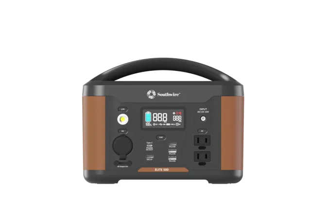 PORTABLE POWER STATION 500 WITH 515 WATT-HOURS OF POWER, FEATURES PURE SINE WAVE, 5 USB PORTS, 2 AC OUTLETS, 12V DC OUTLET. MOLDED HANDLE