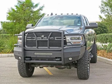 Aluminum construction, will accommodate most 20 inch double row lights, both E-coated and powder coated with a texture 1 Matte finish and supports Adaptive Cruise Control and Front Emblem Cameras (If applicable). Comes with a 2 year warranty.
