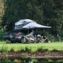 - A large, connected awning with a durable, lightweight design that shields you from both sun and rain, creating a comfortable, weather-protected living space at your campsite