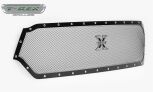 X-Metal Grilles are designed for the extreme truck and SUV enthusiast looking to make a bold statement. X-Metal Series Grilles feature an aggressively studded perimeter surrounding the formed heavy gauge mesh. Each stud is embedded with X-Metal branding and every grille includes our patented X-Metal logo. This X-Metal Grille is made of mild steel and comes with chrome studs and black powdercoat finish, most X-Metal Grilles are also available with black finish and black studs (Stealth X-Metal Series). Our uncompromising quality begins with advanced 3D CAD supported engineering and design. All our products undergo rigorous testing for fit, finish, drivability and durability. Each part starts with a custom jig using laser cut materials, precision TIG welding and meticulous assembly and quality control. This dedication of American craftsmanship shows in every product that leaves our facility in California. All our black powder coated grilles go through a multi-stage process, first they are sandblasted to prepare the surface for our epoxy primer base coat. Second, they are cleaned to remove contaminants from the sandblast process. Then an epoxy primer base coat is applied and cured to seal the entire surface, finally the color top coat is applied over the primer and cured to provide long lasting protection and a high-quality OEM finish.