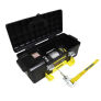 The Superwinch Winch2Go features innovative Winch-in-a-Box contruction, and offers a variety of uses for home, work, road, or play. The Winch2Go comes with all the gear and accessories you need for any job, including snatch block, straps, shackles, and even a pair of winch gloves. Be assured, the Winch2Go is a very capable system and offers all of the benefits of a full-featured hard-mounted winch, including a quick connect 12 VDC power cord, 8,000 lb snatch block, up to 4,000 lbs direct pulling capacity, solid steel baseplate with integrated hawse fairlead, 40 feet of 7/32 Steel Rope with Heavy-Duty clevis pinned, latched hook, and rugged 12 ft wired handheld remote. Never get stranded again, regardless of weather or terrain. The Winch2Go only needs a basic anchor point for recovery. If there is a rock, tree, or vehicle to anchor to, the Winch2Go can do the rest.